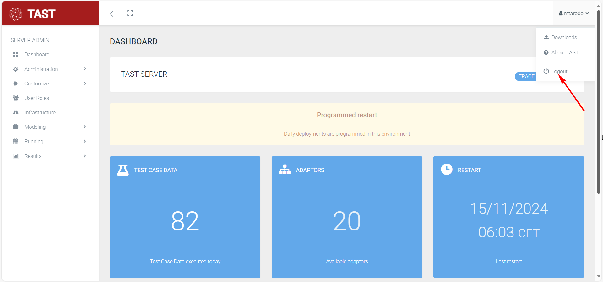 If we check the following option “About TAST”: