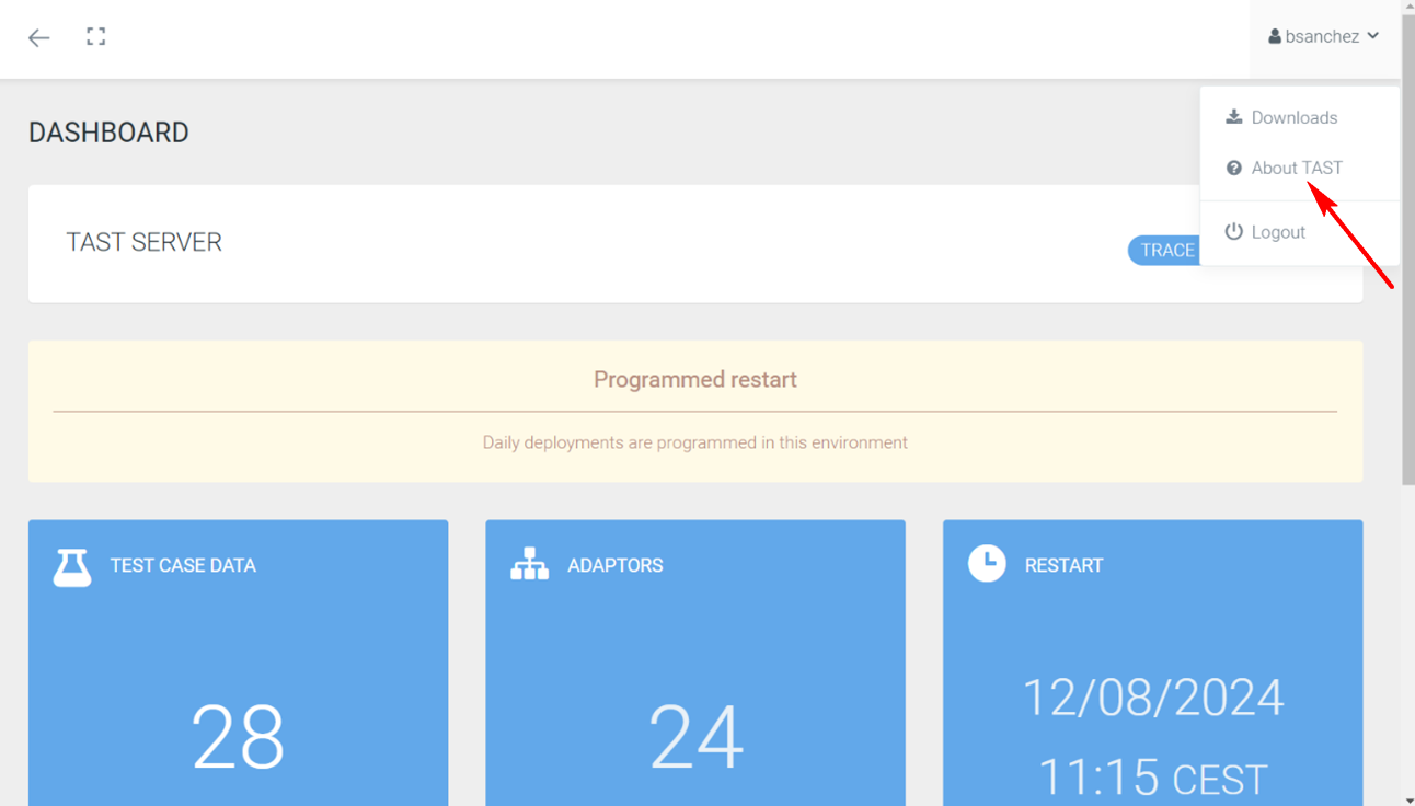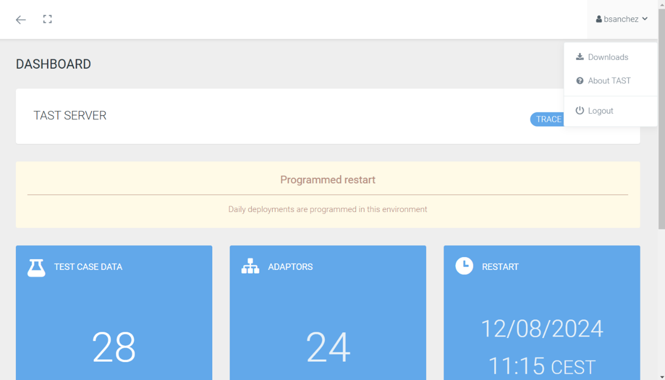 If we check the first option “Downloads”, we access to a new download screen where all the downloads that can be done from TAST are centralized and provided. As we can see in the image, there is a main menu on the left with the following categories: