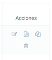 Contiene una serie de botones para realizar acciones sobre cada ítem de biblioteca: editar, editar contenido, copiar y eliminar.