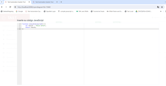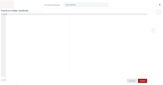 Haciendo click sobre este campo, se expande y nos lleva a una ventana modal con el editor de código especial para introducir código Javascript o Sql.