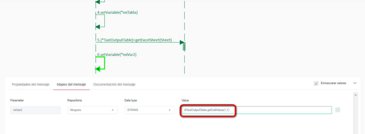 En la asignación de un mensaje, es posible incluir un valor con salto de línea. Para ello, hay una casilla de verificación 'Texto multilínea':