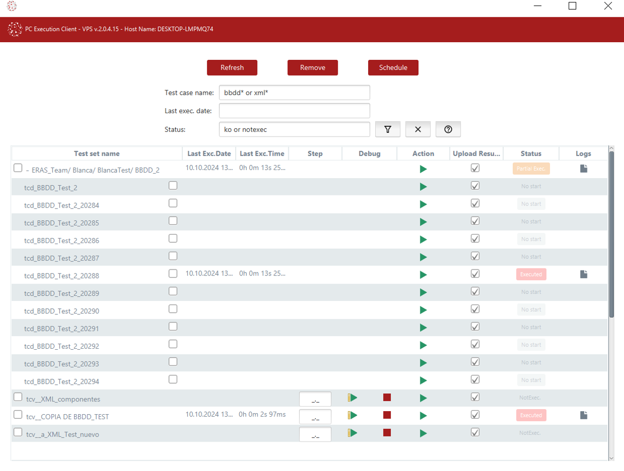 For example, if you filtered the table with the field Status = “KO OR notexec”, when you click on the Run Test Set button, only the testcases with status KO and Not executed will be executed. That is, it only executes the testcases that appear in the filtered table.