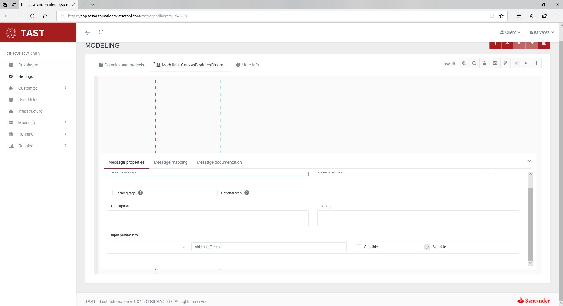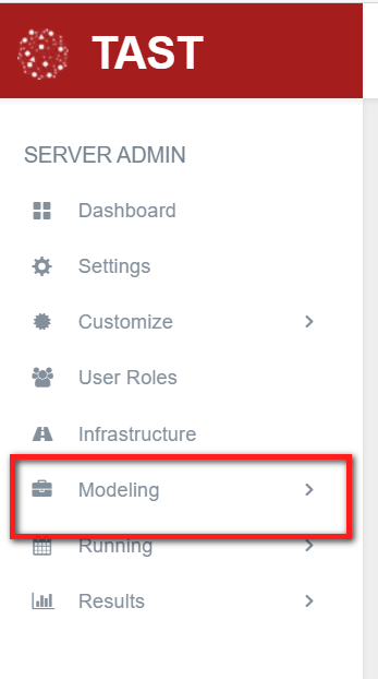 When logged in the tool, the user can see a menu in the left side (see First steps in TAST for further info). In this menu, the user will click on the button “Modeling”. After this, there will open a window where the user will select the domain and project where the test case will be included in.
