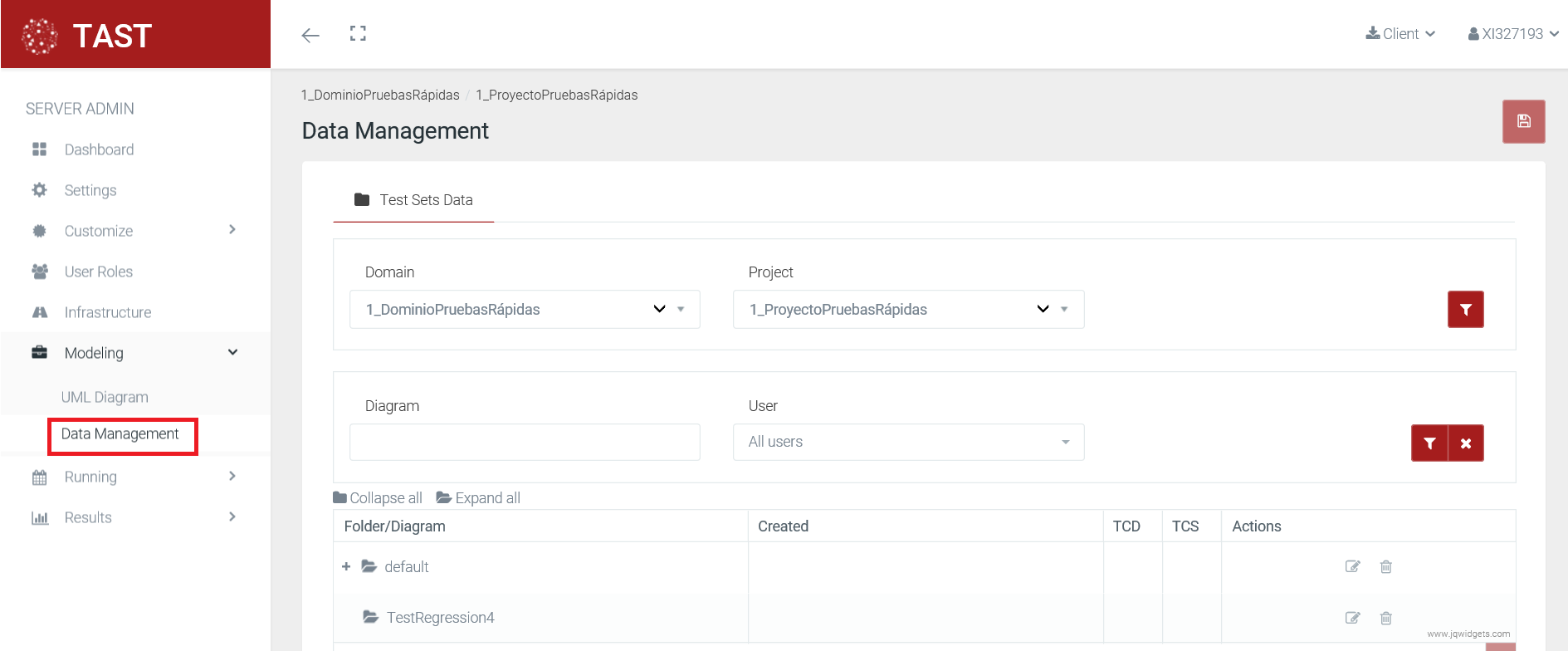 With this option it will be possible to manage the data sets with which the tests corresponding to a specific diagram will be launched.